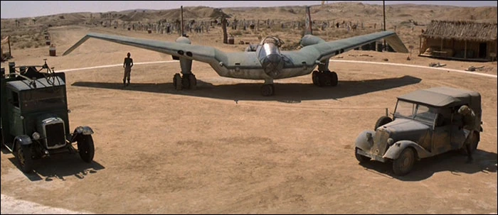 - Maszyna pojawiająca się w filmie jest całkowicie niepodobna do jakiejkolwiek konstrukcji zbudowanej faktycznie wówczas zarówno w Niemczech, jak i na świecie. Mimo że jest raczej całkowicie fikcyjna, można w niej dostrzec podobieństwo do zaprojektowanego pod koniec II wojny światowej prototypu odrzutowego samolotu, Horten Ho 229, na którym była najpewniej wzorowana maszyna z filmu.