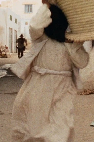 Under the direction of the Nazis, the henchman and an ally picked up the basket with Marion still inside, and began a mad dash through the streets of Cairo as Jones caught up and followed from close behind. Jones chased them through a confusingly large group of similarly dressed locals carrying baskets and was momentarily distracted by a local swordsman who he shot and killed along the way.[1]
