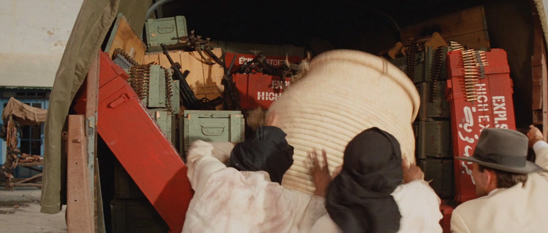 The basket-carrying pair eventually reached a German truck driven by two other toughs and dumped their package in the back with numerous explosives then fled. However, at some point the baskets had been switched. When Jones inadvertently destroyed the truck and thought he had taken Ravenwood with it, the captive Marion was actually sent to the Tanis dig site in secret.[1]