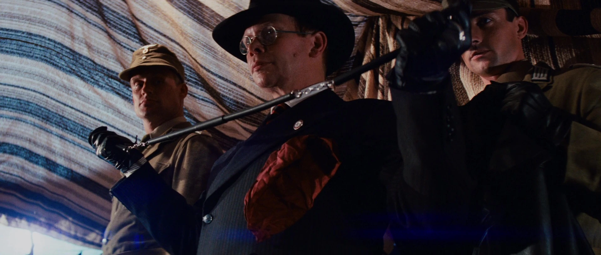 In 1936, Toht was sent to Nepal by the Third Reich Special Antiquities Collection[7] to acquire the headpiece to the Staff of Ra from Marion Ravenwood. Toht and his surbordinate Otto hired three henchmen off the streets of Kathmandu, Nepal known as the Ratty Nepalese, the Mean Mongolian and the Giant Sherpa,[1] paying them a handful of cash to ensure their loyalties.[6] They all followed the American archaeologist Indiana Jones to The Raven bar in Patan where Toht tried to take the piece by preparing to torture Marion with a hot iron, but Indiana Jones appeared and intervened, disarming Toht with his bullwhip.[1]