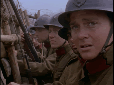 While arguing over an empty spot in a crowded parking lot, two younger men were inadvertently told the story of when Jones fought for the affection of an Italian girl in wartime, 1918. At that time his rival had been none other than Ernest Hemingway.[176] Later on, Jones daughter Sophie tried to drag him away from the soap opera he was watching, so they would not miss the grandparent's tea at his granddaughter Lucy's school. Indy claimed that there were times when life was just like theater and proceeded to tell his daughter the story of when he personally witnessed the Easter Rebellion in Ireland, 1916.[159]