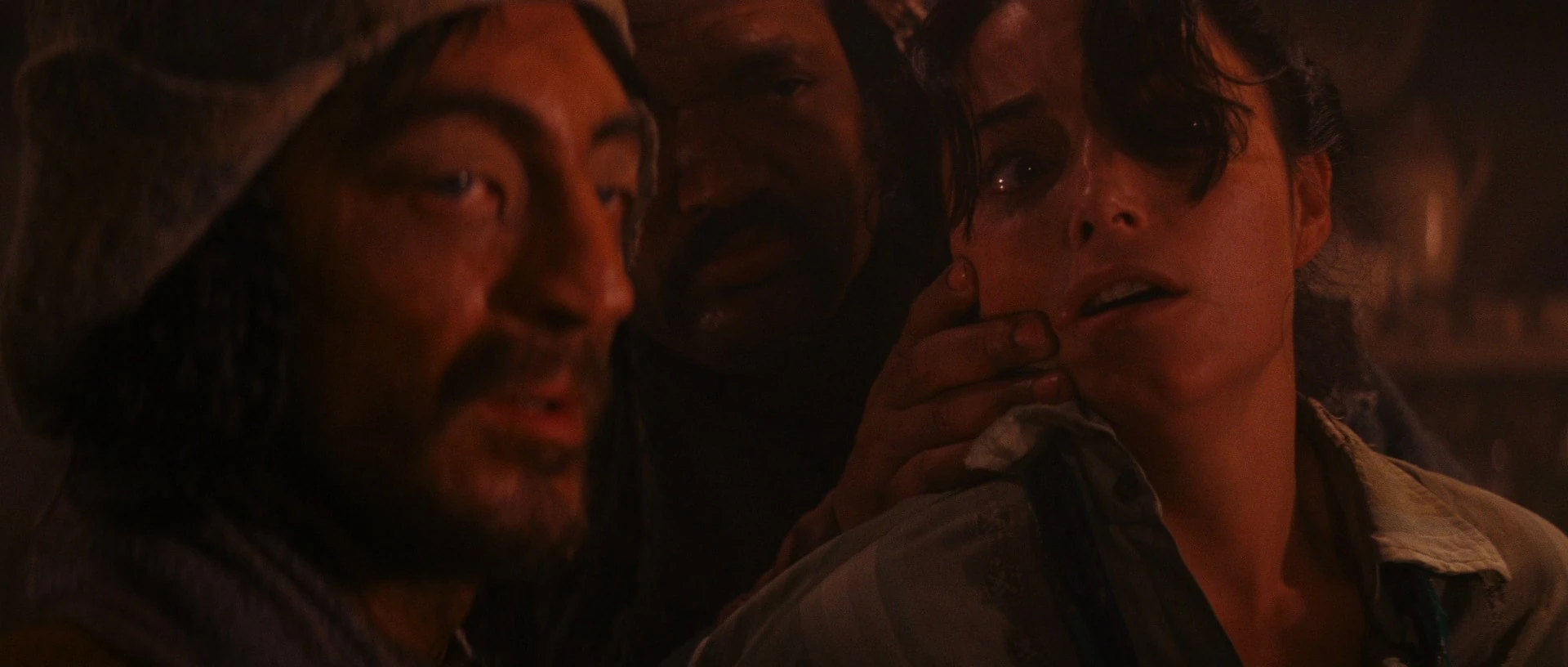After taking some photos[8][21] and while shopping in the city marketplace buying dates, Marion and Jones were ambushed by a band of local thugs coordinated by German agents. Thanks to the latter's skill with a bullwhip, Ravenwood evaded capture but, eventually, she crossed paths with another hitman, who drew a knife on her. She was chased into a dark building by the thug, who was knocked out by Marion with a frying pan.[1]